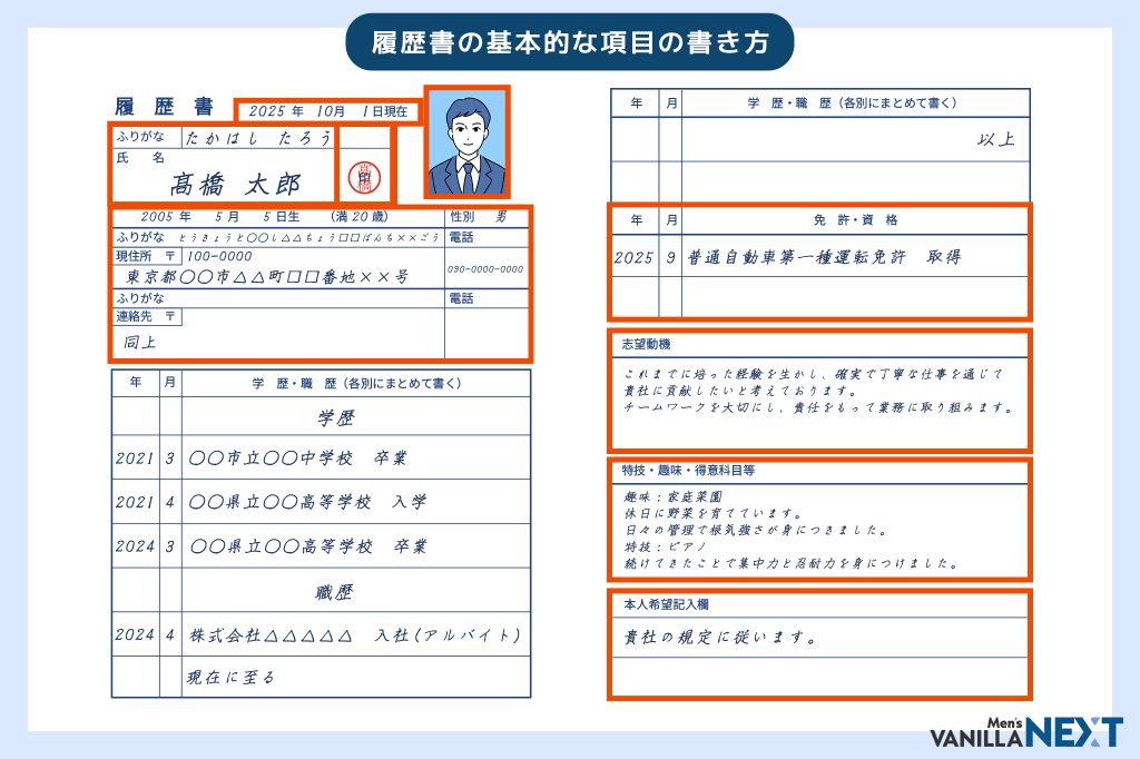 ここでは、高卒者に向けて、必須項目の基本的な書き方を解説します。