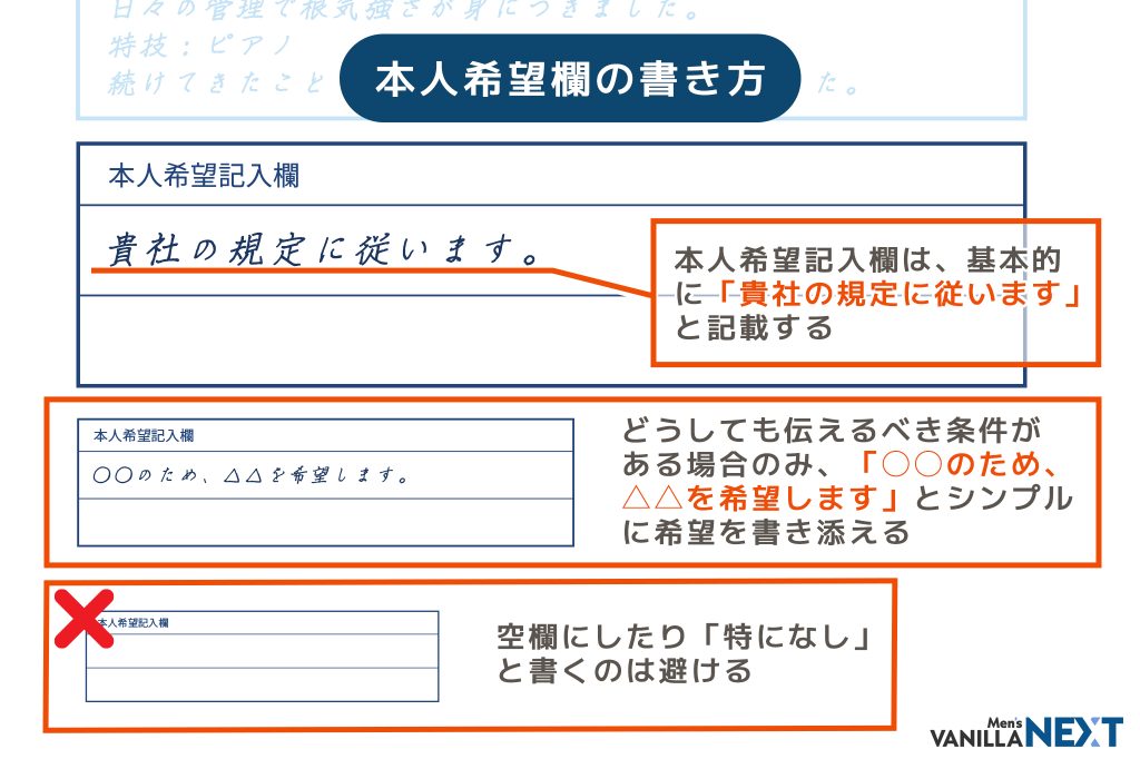 本人希望欄の書き方:「貴社の規定に従います」が基本
